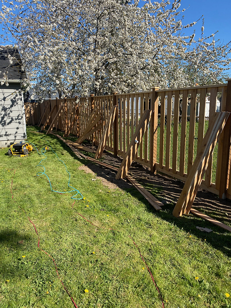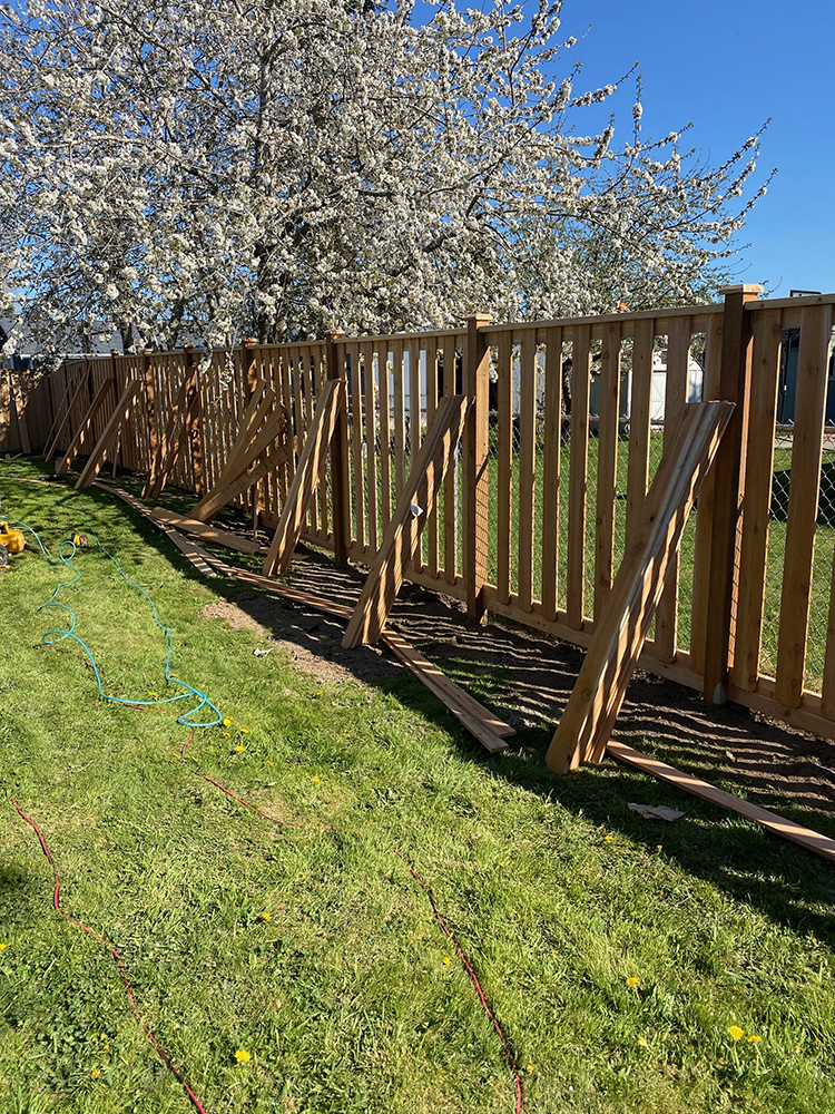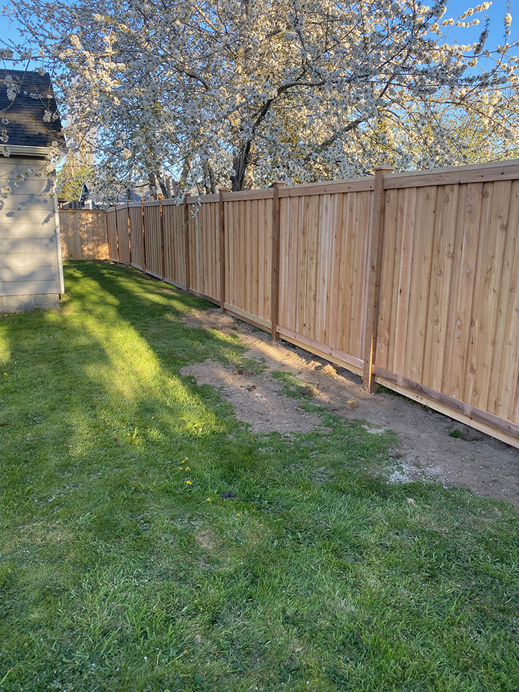 Over slab cedar fence